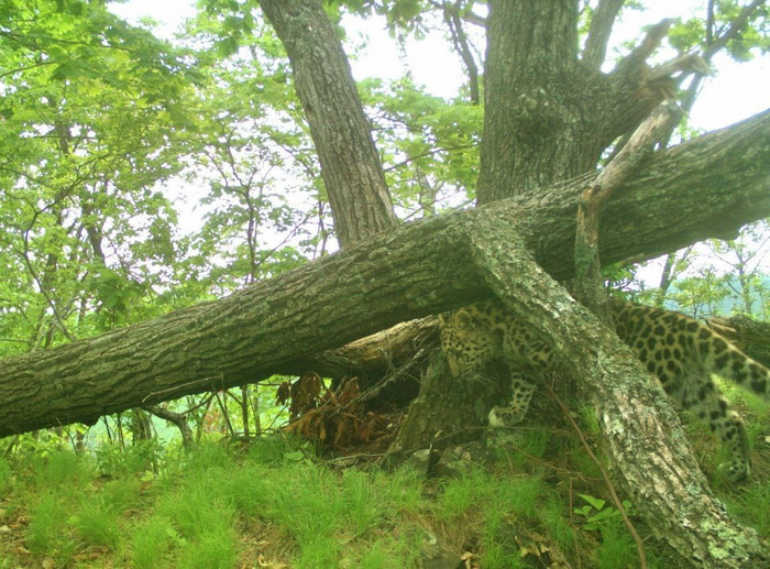 На этих снимках фотоловушки – самка дальневосточного леопарда под номером Leo 138F в сопровождении своего котёнка.