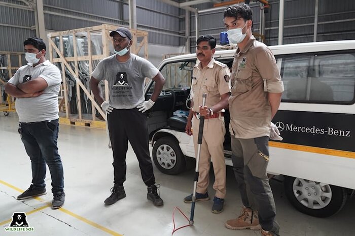 Обнаружив его, представители завода связались с Wildlife SOS «службой спасения дикой природы», которая моментально приехала, чтобы безопасно вывезти экзотическое животное. Группа из четырёх экспертов оцепила территорию и усыпила леопарда транквилизаторами. После чего его поместили в клетку и доставили в Чаканский лесной заповедник.