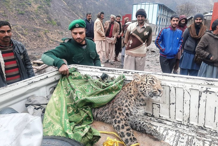 Пакистан, территория Азад-Кашмир, округ Нилум. Сотрудник департамента охраны природы спас раненого леопарда и погрузил зверя в машину, чтобы отвезти на лечение.