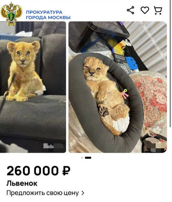 В Москве пытались без документов продать трёхмесячную львицу за 260 тысяч рублей