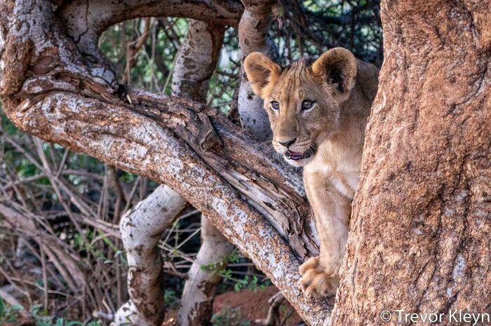 "Молодой самец гепарда на фоне заходящего солнца окликает своих братьев и слушает их ответы. У этих трёх детенышей, рожденных самкой по имени Шаше, было трудное детство, так как они рано потеряли мать. Но благодаря невероятным усилиям рейнджеров заповедника "Тигриный каньон", которые много сделали для их выращивания, теперь гепардята могут свободно бродить и охотиться в этом огромном заповеднике."