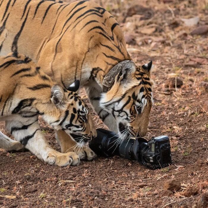 На фото Чоти Тара (Choti Tara) и двое её детенышей, которые забрали у фотографа камеру, случайно выскользнувшую из джипа.