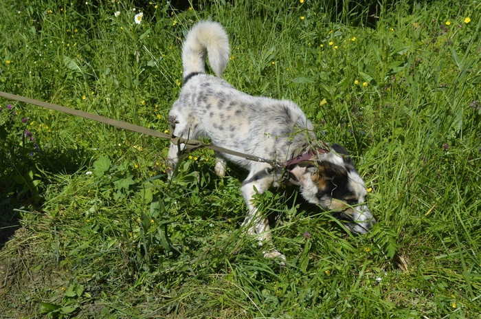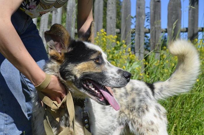 Парень ручной, но с характером. Имеет грубый, не назойливый голос. Шерсть как у далматинца, в горошек, что ему придает особенный вид. Мощность наполовину среднеазиатская. В целом песик уже практически вырос, довольно крупным, коренастым и мощными лапами, а с возрастом еще заматереет. Сейчас Боссу всего то 2 годика.