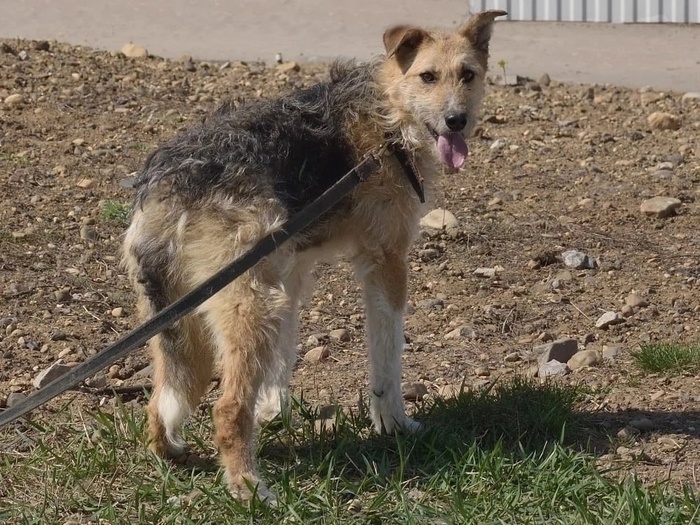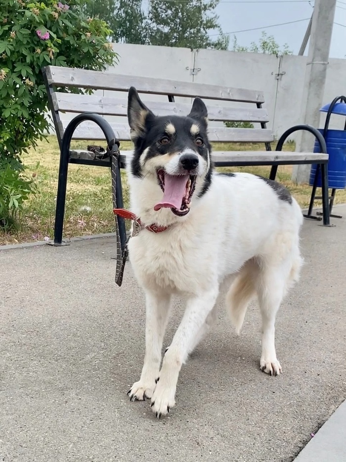 ГРУНЯ в вольере и на площадке смелая, активная, игривая. А вот за территорией приюта, да ещё и с незнакомцами, собака старается слиться с землей. Настолько ей страшно...