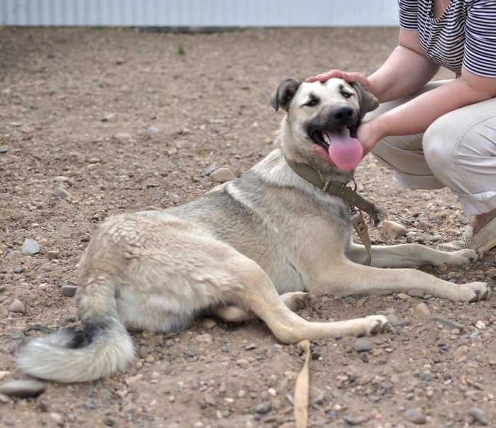 Аля очень добрая собака. Она обожает "своих" людей. Весело подпрыгивает, завидя издалека, что к ней идут. Аля выгуливает всех сидящих с собой соседей. То есть, когда их берут на прогулку, Аля идет рядом у ноги, везде сопровождая. Да, вот такая она у нас умная и послушная. Еще Алюша, конечно же, любит вкусняшки и массаж животика.