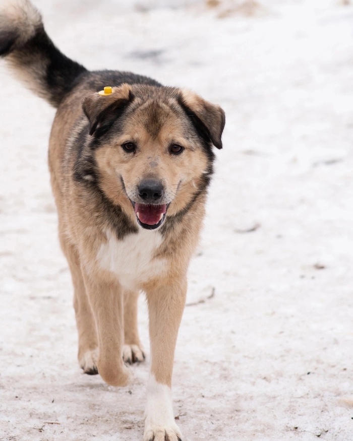 Злата (рыженькая) красива до безумия, неженка, ласкуша, от человека на прогулке даже на 5 метров не отойдёт, тоже большая умница и жить не может без своей подружки. Возраст 6-7 лет. Наверное тоже метис какой-то овчарки.