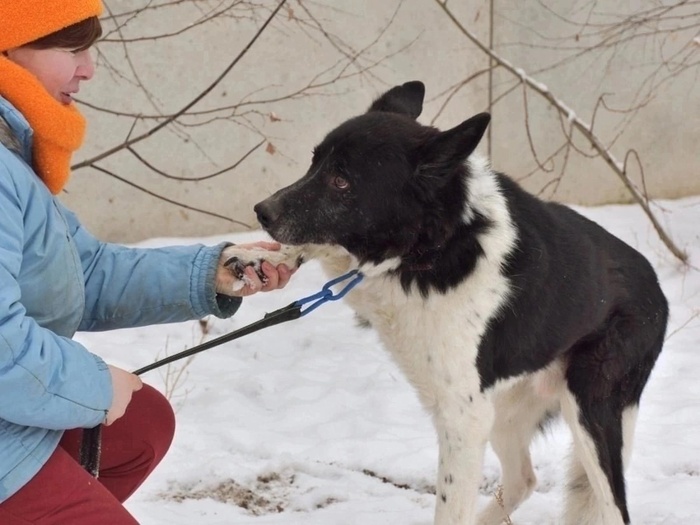 Пуш просидел около 5 лет без выгула в дальней, темной клетке муниципального приюта, но не сломался, не одичал и очень тянется к человеку.