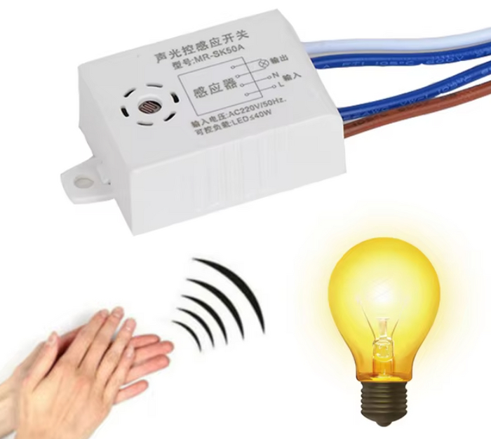 Устройство автоматически активируется звуковыми сигналами в диапазоне 50–70 дБ, распознавая хлопки, свист или голосовые команды. Датчик оснащен функцией отключения в светлое время суток, что делает его энергосберегающим.