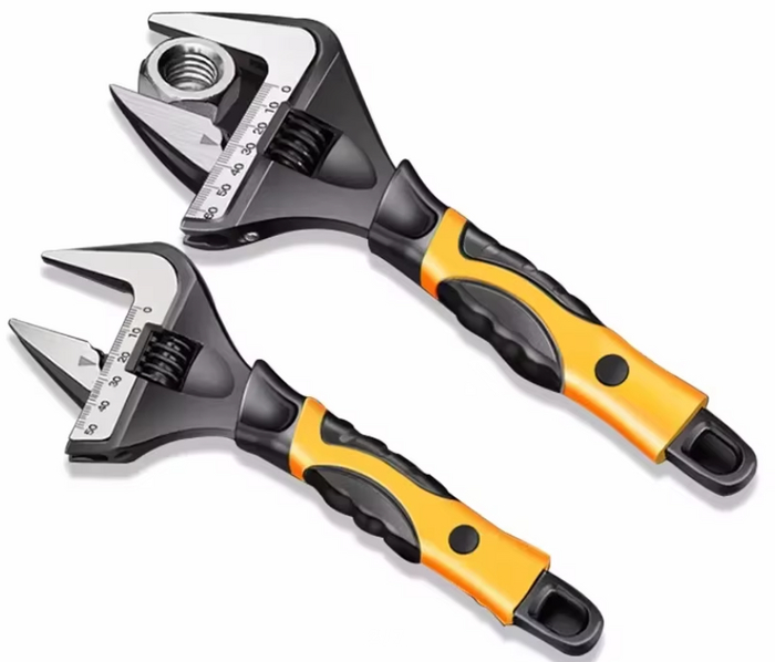 Разводной ключ из хром-ванадиевого сплава подходит для работы с крепежами разных размеров. Ширина губок регулируется, что позволяет использовать инструмент для разнообразных задач.