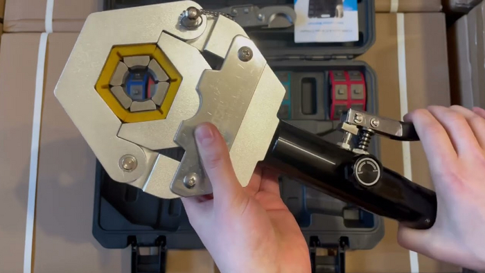 Благодаря продуманной конструкции, инструмент равномерно сжимает наконечники в четырёх плоскостях, что улучшает качество контакта и минимизирует риск перегрева.