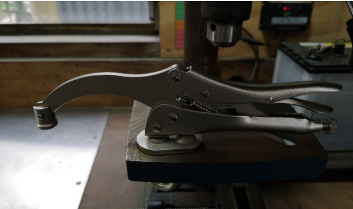Зажим с рычагом фиксатора разработан для удержания заготовок на рабочей поверхности сверлильного станка. Он обеспечивает устойчивое закрепление детали, что повышает точность сверления и снижает вероятность ошибок.