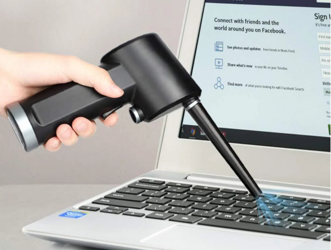 Устройство генерирует воздушный поток со скоростью до 28 м/с, что позволяет легко устранять пыль и грязь с электроники, мебели и других предметов.