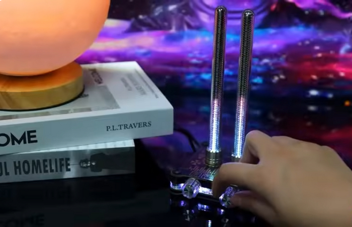 Размером 30 на 10 см, светильник работает от батареек или USB, что делает его удобным и портативным.