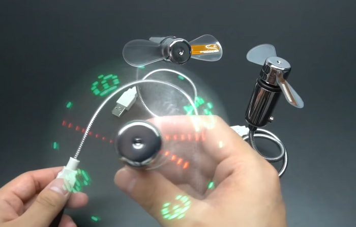 Вентилятор также оснащён встроенными часами с LED-подсветкой и функцией программирования, позволяющей создавать собственные изображения на лопастях.
