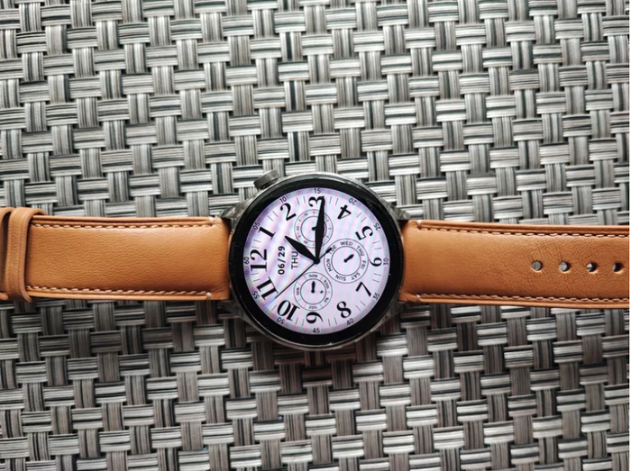 Часы оснащены большим AMOLED дисплеем размером 1,43 дюйма с разрешением 466x466 пикселей. Дисплей дополнен вращающимся колёсиком быстрого доступа, позволяющим пользователю переключать функции и выбирать один из более чем двадцати виртуальных циферблатов.