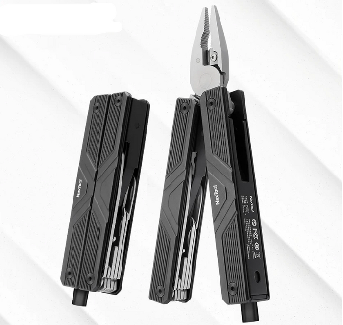 Кроме того, мультитул включает острогубцы, плоскогубцы, кусачки для жёсткой проволоки и многожильного провода, ножницы, крестовую и плоскую отвёртки, открывалку для бутылок, консервный нож, нож для коробок и обычный нож.