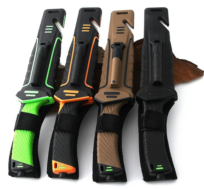 Нож оснащён несколькими дополнительными инструментами, включая пилу на обратной стороне лезвия, стеклобой и стропорез.
