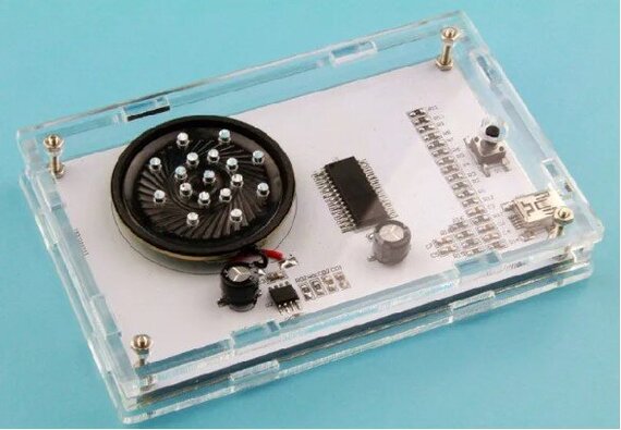 Представляет собой набор компонентов, который позволяет создать собственную портативную колонку с интерактивными светодиодами, способными визуализировать играющую мелодию.