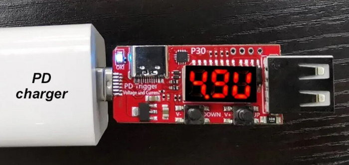 Устройство предоставляет возможность выбора из разных уровней напряжения (5V, 9V, 12V, 15V, 20V), обеспечивая гибкость в использовании.