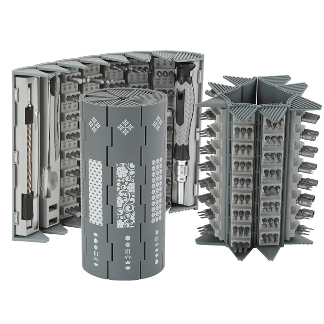 Практичный комплект для удаления сорванных и прикипевших шурупов. Подходит для работы с различными поверхностями и крепежом.