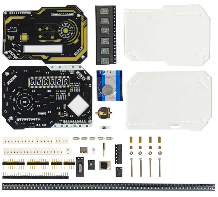 Этот набор для самостоятельной сборки электронных часов сочетает в себе визуальный стиль киберпанка и образовательную ценность. Он создан специально для тех, кто хочет не просто пользоваться гаджетами, а понимать их изнутри — шаг за шагом собирая своё собственное устройство из набора компонентов.