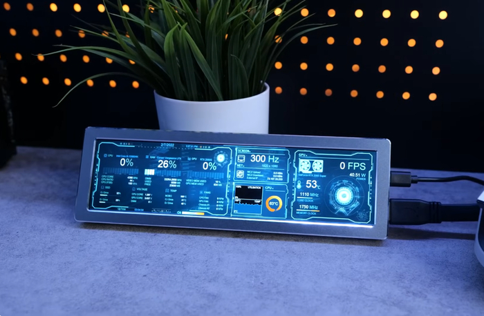 Этот элегантный 8,8-дюймовый дисплей с разрешением 1920×480 пикселей превращает ваш рабочий стол в настоящий командный центр. Благодаря подключению через HDMI экран отображает системные параметры в реальном времени: температуру процессора, загрузку видеокарты, частоты, скорости дисков и многое другое.