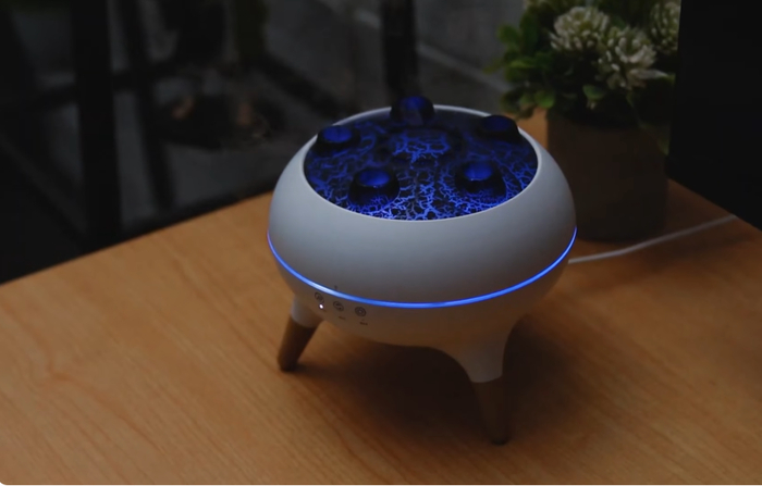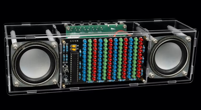 Благодаря Bluetooth-модулю MH-M18 колонка воспроизводит музыку по беспроводной связи, а встроенный спектроанализатор визуализирует её в виде движущихся волн из синих, красных и зелёных светодиодов.