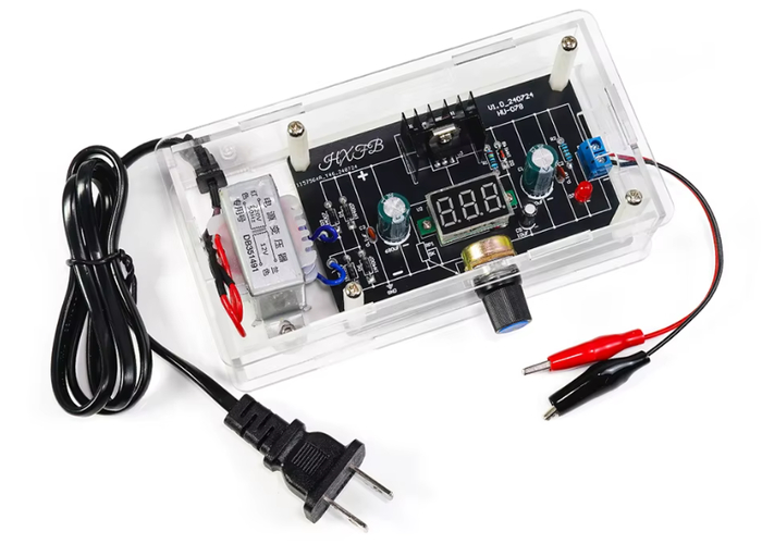 Прозрачный акриловый корпус не только придаёт устройству аккуратный вид, но и защищает компоненты от случайных повреждений. Встроенный цифровой вольтметр упрощает процесс настройки — напряжение отображается в режиме реального времени, позволяя точно выставить нужное значение.