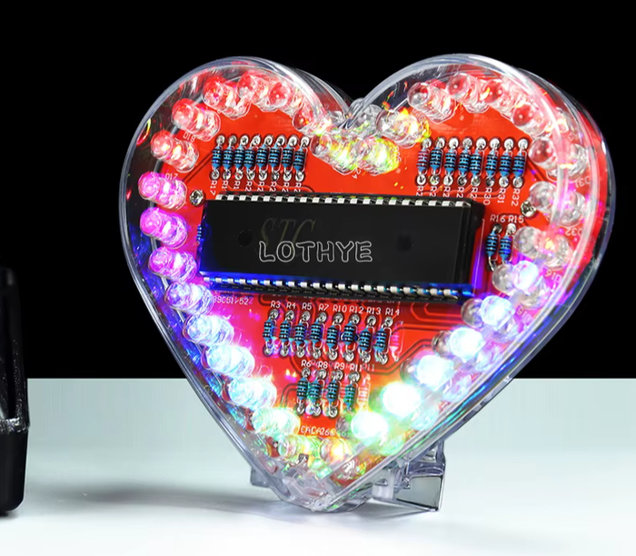 Наборы в форме сердца от LOTHYE — это не только обучающие комплекты по пайке, но и отличные декоративные изделия с динамичной RGB-подсветкой. В зависимости от модели вы получаете 25 или 32 ярких светодиода диаметром 5 мм, которые создают переливающийся эффект в форме сердца. Доступны варианты с одноцветными (красными) или многоцветными светодиодами, меняющими цвет автоматически.