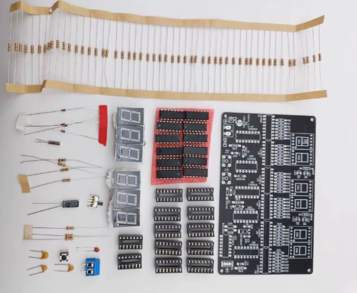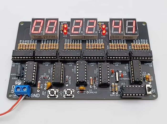 Этот набор представляет собой сборочную схему электронных 24-часовых цифровых часов на базе логических микросхем, без использования микроконтроллеров и программирования. Вместо этого управление временем осуществляется исключительно аппаратно, на основе комбинации генераторов, делителей частоты, счетчиков и декодеров.