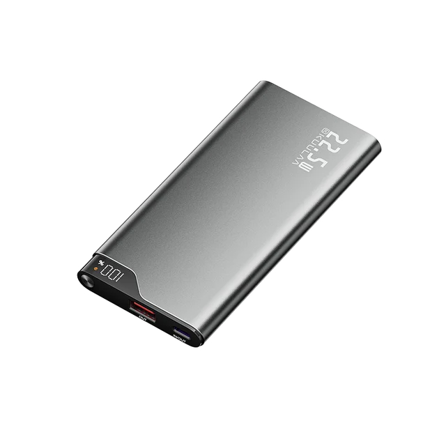 Алюминиевый корпус создаёт ощущение надёжности и выдерживает повседневные нагрузки, не царапаясь и не деформируясь при переноске в сумке или рюкзаке. Компактный размер позволяет легко носить устройство в кармане, а аккуратная форма не занимает лишнего места среди других гаджетов. Поверхность остаётся прохладной даже при быстрой зарядке, благодаря чему пользоваться повербанком комфортно.