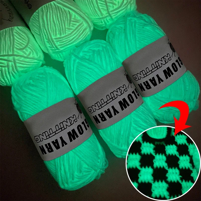 Нити имеют уникальную люминесцентную структуру, благодаря которой изделия мягко светятся в темноте. Материал поглощает свет в течение дня и затем постепенно отдаёт его в темноте. Такой эффект делает вещи заметными ночью и добавляет необычный декоративный акцент. Пряжа отлично подходит для аксессуаров, носков, декоративных элементов одежды или вязанных игрушек.