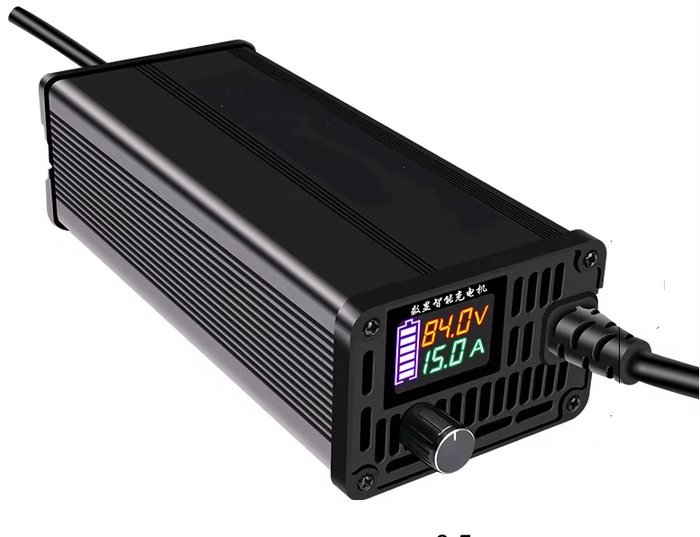 Второй вариант, представленный в темно-зеленом корпусе, предлагает расширенные возможности настройки. Он позволяет изменять выходное напряжение в диапазоне от 42 до 88,2 В, что делает его универсальным решением для различных типов аккумуляторов. Возможность регулировки тока также позволяет адаптировать процесс зарядки под конкретные требования, обеспечивая защиту элементов питания.