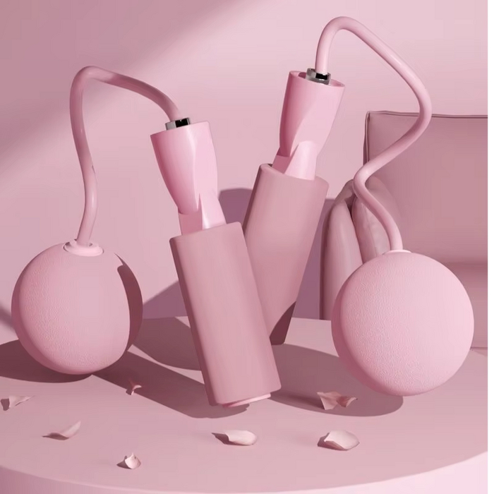 Скакалка имеет необычную конструкцию: шары, соединённые проводом с ручкой, обеспечивая удобство использования даже в ограниченном пространстве.