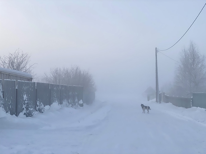Туманный мороз окутал окружающий мир. Пока на своём участке, до туалета дорогу видать.