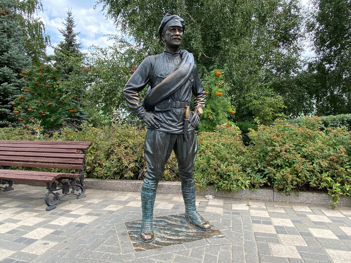 А дальше мы решили вернуться на улицу Ленинградскую, чтобы снова пообедать в кафе «Вилка-ложка», про него я уже упоминал в одной из статей, если хотите – почитайте, повторяться не буду. На набережной, по пути к Ленинградской, нам вновь встретился незабвенный товарищ Сухов, как всегда, на своем месте с лицом Анатолия Кузнецова
