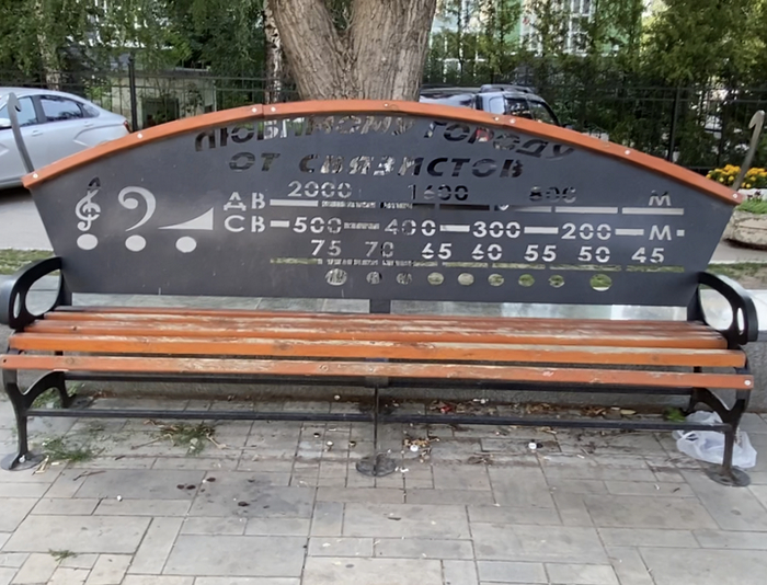 Но здесь есть еще одна достопримечательность – это «Лавка связистов». Дело в том, что находится это все рядом с большим зданием, построенным в 30-е годы прошлого века, это здание бывшего Центрального телеграфа. Вот связисты и установили эту лавку здесь ко дню радио.