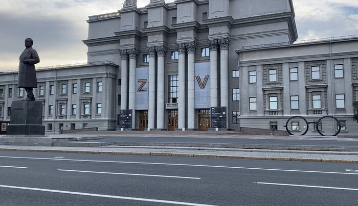 Вот только, «очки Шостаковича» куда-то делись, в прошлом году они здесь были, большие такие, справа от центрального входа в театр, если смотреть на его фасад.