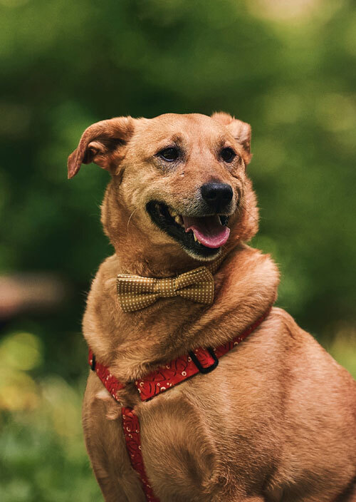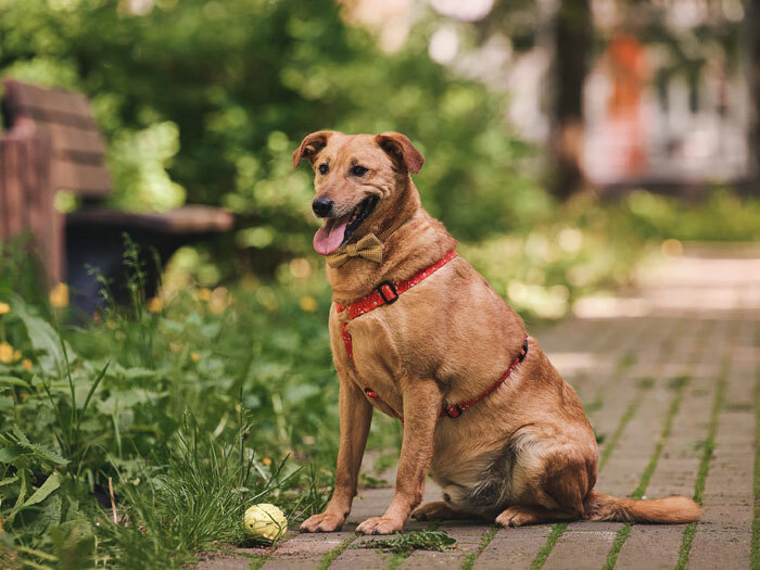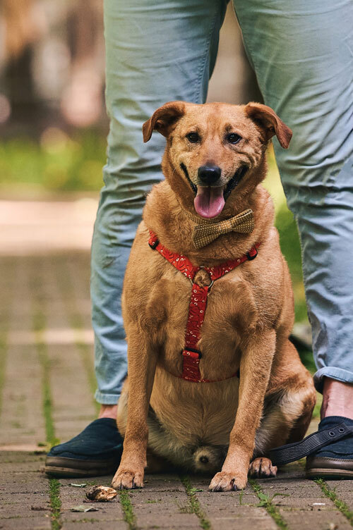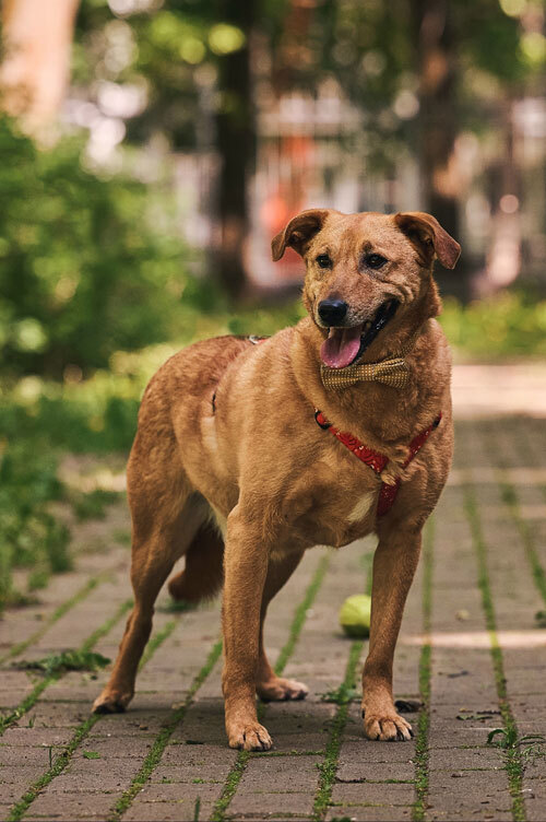 Честеру 5 лет, он компактный (ниже колена), весит около 20 кг.
