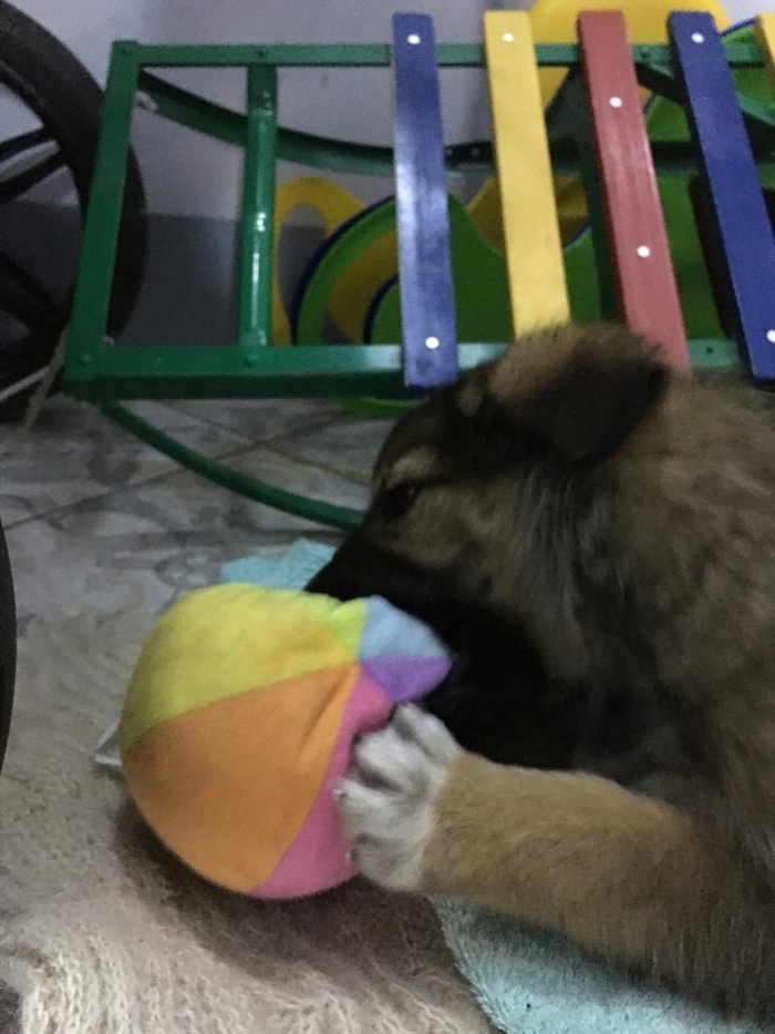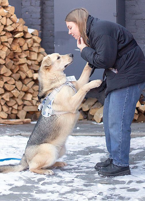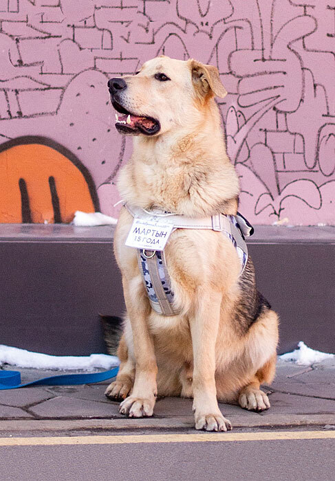 Прекрасно ходит на поводке, на машины, велосипеды и прохожих не реагирует