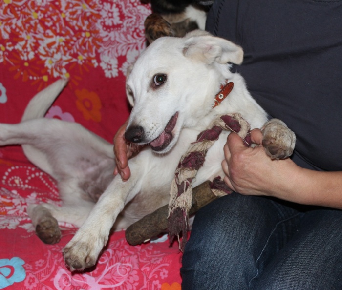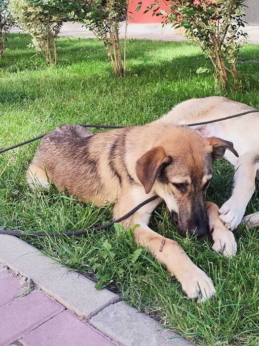 Есть предположение, что это могут быть щенки алабая или помесь. Как бы то ни было, щенки обещают вырасти крупными.