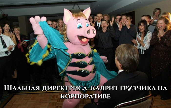 И вот стираются все границы, субординация больше не соблюдается, все равны и пьяная директриса 50+, пытается соблазнить юного грузчика.