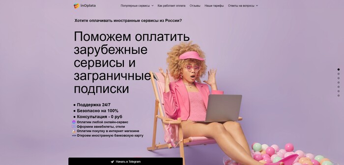 InOplata предлагает несколько вариантов подключения подписки с сопровождением оператора. Общение проходит в Telegram: пользователь обращается к менеджеру, выбирает подходящий способ оплаты и переводит средства удобным способом.