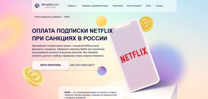 Oplata Guru — популярный сервис, через который можно на Netflix купить подписку с помощью менеджера в Telegram. Площадка специализируется на оплате зарубежных сервисов и сопровождает пользователя на всех этапах — от выбора подписки до завершения оплаты.