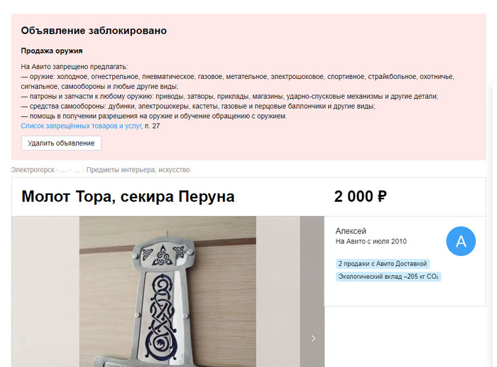 Не знаю как работают алгоритмы авито или кто там этим занимается, но с моим примером могу сказать, что оружием может быть что угодно. Весит больше 100 грамм или в названии любое наименование имеется и всё - бан. Без комментариев.