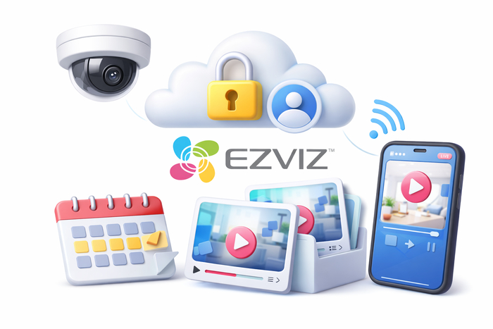 Подписка EZVIZ CloudPlay расширяет работу камер через приложение и даёт доступ к облачному архиву записей по событиям: вы просматриваете сохранённые фрагменты за выбранный период, даже если не заходили в приложение в момент срабатывания. Архив доступен удалённо и привязан к вашему аккаунту EZVIZ.