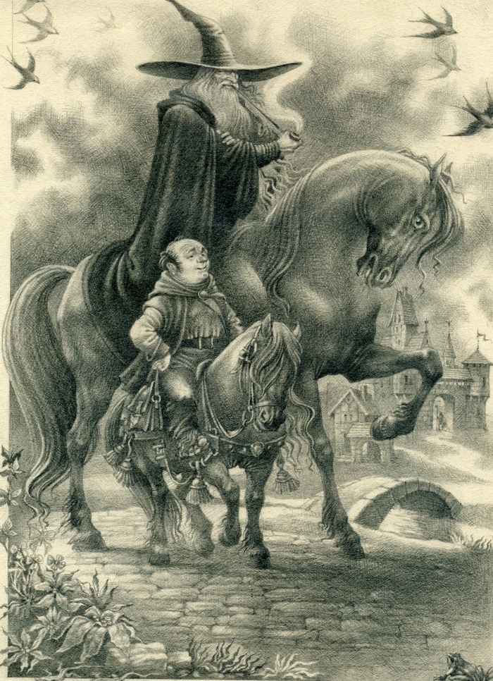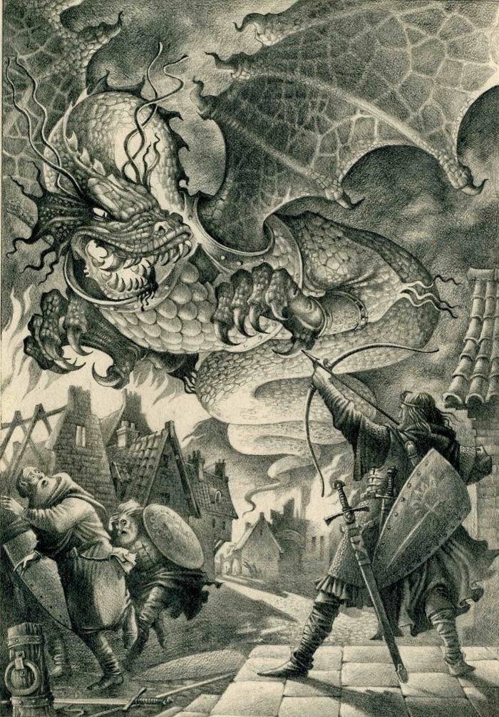 Я помню моё первое знакомство Толкином (он был Толкиеном в моём детстве). В поисках фантастики пришёл в школьную библиотеку, фентези тогда толком ещё не было у нас, а основные столпы были прочитаны не по разу. И Алла Александровна мне предлагает какого-то Хоббита... Глянул, книга небольшая, прочитаю быстро, жаль, но на безрыбье... Дошёл до дома, вечером начал читать и обомлел... Я ничего подобного не читал никогда!!! Вроде сказка, а вроде ж всё серьёзно! За отведённые 10 дней, я прочитал её дважды! Потом я оббежал все книжные в городе - нигде нет! Я поднял на уши всех знакомых - ни у кого нет... Мне нужна была СВОЯ книга, потому что это было окончание года, надо было готовиться к каким-то промежуточным пробным экзаменам в школе, в музыкалке были годовые экзамены, а думать я мог только о книге! Магазины не хотели привозить или говорили, что привезут, если есть на складе... С тех времён, видимо, большая часть людей так и работает - на отвали... Но не суть! Потом были ежемесячные набеги на центральную библиотеку, где был всего один экземпляр, который каждые 2 недели перекочёвывал ко мне в рюкзак)))