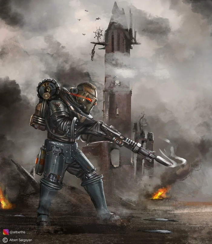 Обычные люди, без сверхтехнологичного оружия, генетических улучшений, на диете из трупных батончиков. Гвардеец и его лазган - самая важная часть обороны Империума
