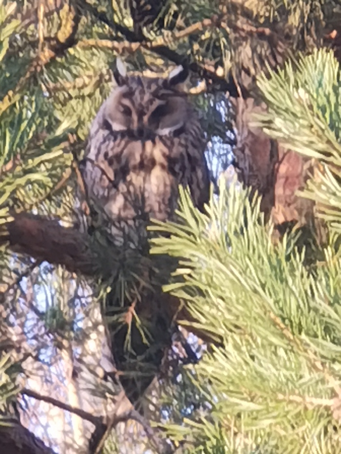 Прилетела погостить на сосне, ушастая, уже 2 дня тусуется. Осталось жилье ей по гос программе по беспроцентной ипотеке предоставить(совятник). Может повезёт останется. Еды рядом полно.