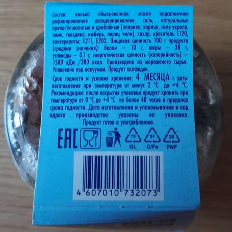 Оплатив баночку, иду домой и в предвкушении решаю посмотреть, что же ещё положили к моим рыбкам, которые скоро окажутся на куске сырной пиццы.